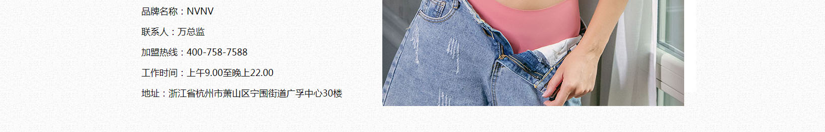 版權所有 nvnv nvnv內衣 nvnv加盟 浙江恩薇健康科技有限公司 中國時(shí)尚品牌網(wǎng) 提供網(wǎng)絡(luò )支持